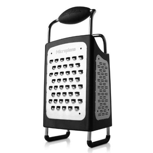 Ob für Gemüse, Gewürze, Käse oder Zitrusfrüchte, die Multifunktionsreibe ist universell einsetzbar. Es ist die Vierkant-Multifunktionsreibe mit den beliebtesten Reibflächen von Microplane. Im stabilen Edelstahlrahmen finden sich die extra grobe, mittelgrosse Schneide, eine feine Reibfläche sowie ein Hobel. Die Reibfläche "fein" kann herausgeschoben und flexibel auch am Esstisch eingesetzt werden. Die Multifunktionsreibe ist spülmaschinenfest. Ein rutschfester Griff und Gummifüsse sorgen für erhöhte Stabilität und Sicherheit beim Arbeiten. Die Multifunktionsreibe wurde ausgezeichnet mit dem Houseware Design Award 2009.