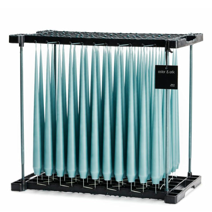 Diese sogenannte Spitzkerze erhält ihre Form durch den natürlichen Wachsverlauf des noch flüssigen Wachses nach dem Herausheben aus dem Wachsbad. Die Kerzen durchgehen 26 Wachstauchgänge bis sie im farbigen Wachsbad ihre endgültige Farbe erhalten.