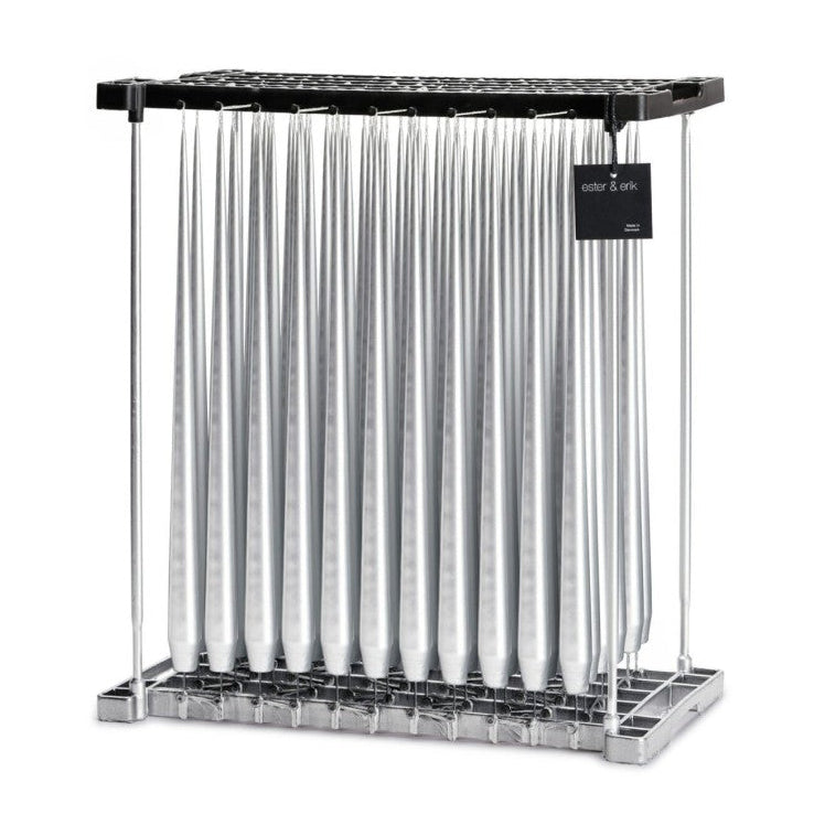 Diese sogenannte Spitzkerze erhält ihre Form durch den natürlichen Wachsverlauf des noch flüssigen Wachses nach dem Herausheben aus dem Wachsbad. Die Kerzen durchgehen 26 Wachstauchgänge bis sie im farbigen Wachsbad ihre endgültige Farbe erhalten.