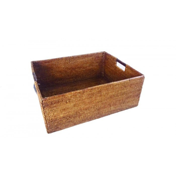 Aufbewahrungskorb, die Seitengriffe sind mit Leder eingefasst.