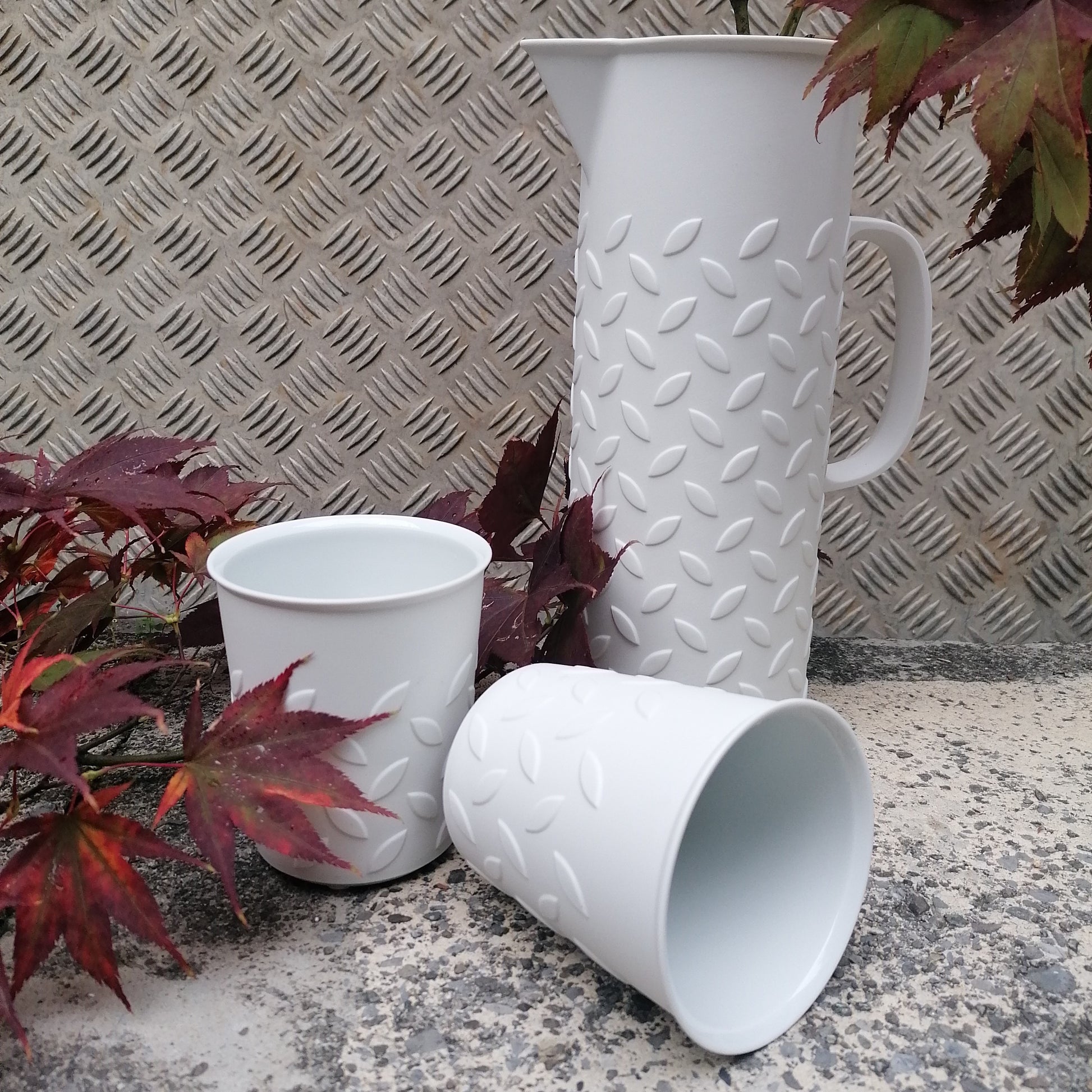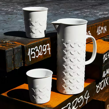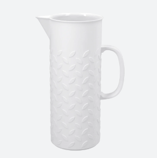 Ein grosser Krug für kalte und heisse Getränke mit einer stolzen Höhe von 27cm und hat ein Füllvolumen von 1.6 Liter. Das klare Muster verleiht dem Bisquitporzellan die gewisse eleganz aber doch klarheit. Die Innenseite der MANDORLA-Serie ist glasiert, während die Aussenseite in hochwertigem Biskuitporzellan gefertigt ist.