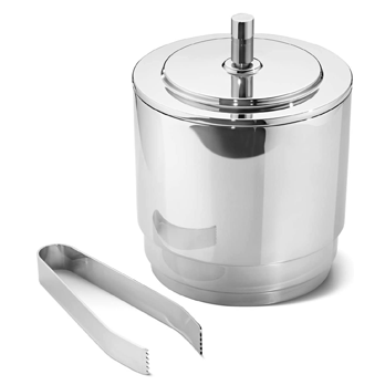 Der Eiswürfelbehälter mit Zange von Georg Jensen ist Teil der Manhattan Kollektion mit Utensilien für den Barbereich. Der Kühler wird aus spiegelpoliertem Edelstahl hergestellt und hält das Eis dank seines formschönen Deckels lang kalt. Mithilfe der Zange können die Eiswürfel stilvoll aus dem Kühler entnommen werden.
