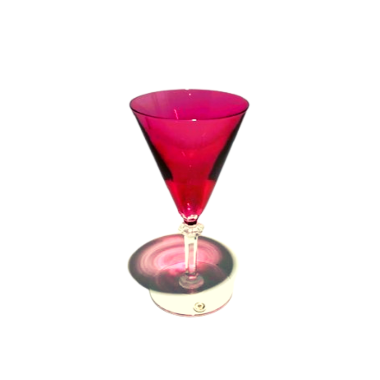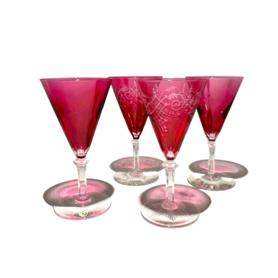 Die sechs Schönheiten. Wunderschöne Champagner-Cocktailkelche aus Kristallglas mit rotem Überfang und Stengelschliff. Zwei von diesem Set ist der Kelch und der Boden sehr schön mit einem Schliff verziert.