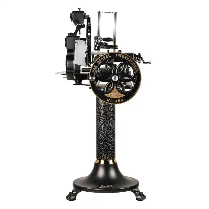 Die Volano B114 verfügt über ein Messer aus deutschem Stahl 100cr6 mit einem Durchmesser von 31,9 cm und einer runden Schneidleistung von 21,5cm. Mit ihr lassen sich Scheiben mit einer Stärke von bis zu 1.5 mm schneiden. Genau wie eine Rasierklinge berührt die konkave Form des Messers das Schneidgut einzig an der Schneidstelle, wodurch Veränderungen von Geschmack und Geruch vermieden werden.
